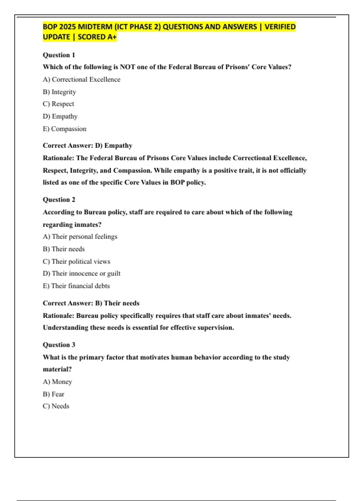 Rationale: The Federal Bureau of Prisons Core Values include Correctional Excellence,