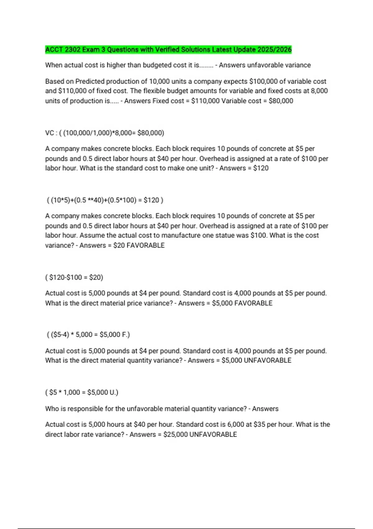 What is the direct material quantity variance? - Answers = $5,000 UNFAVORABLE