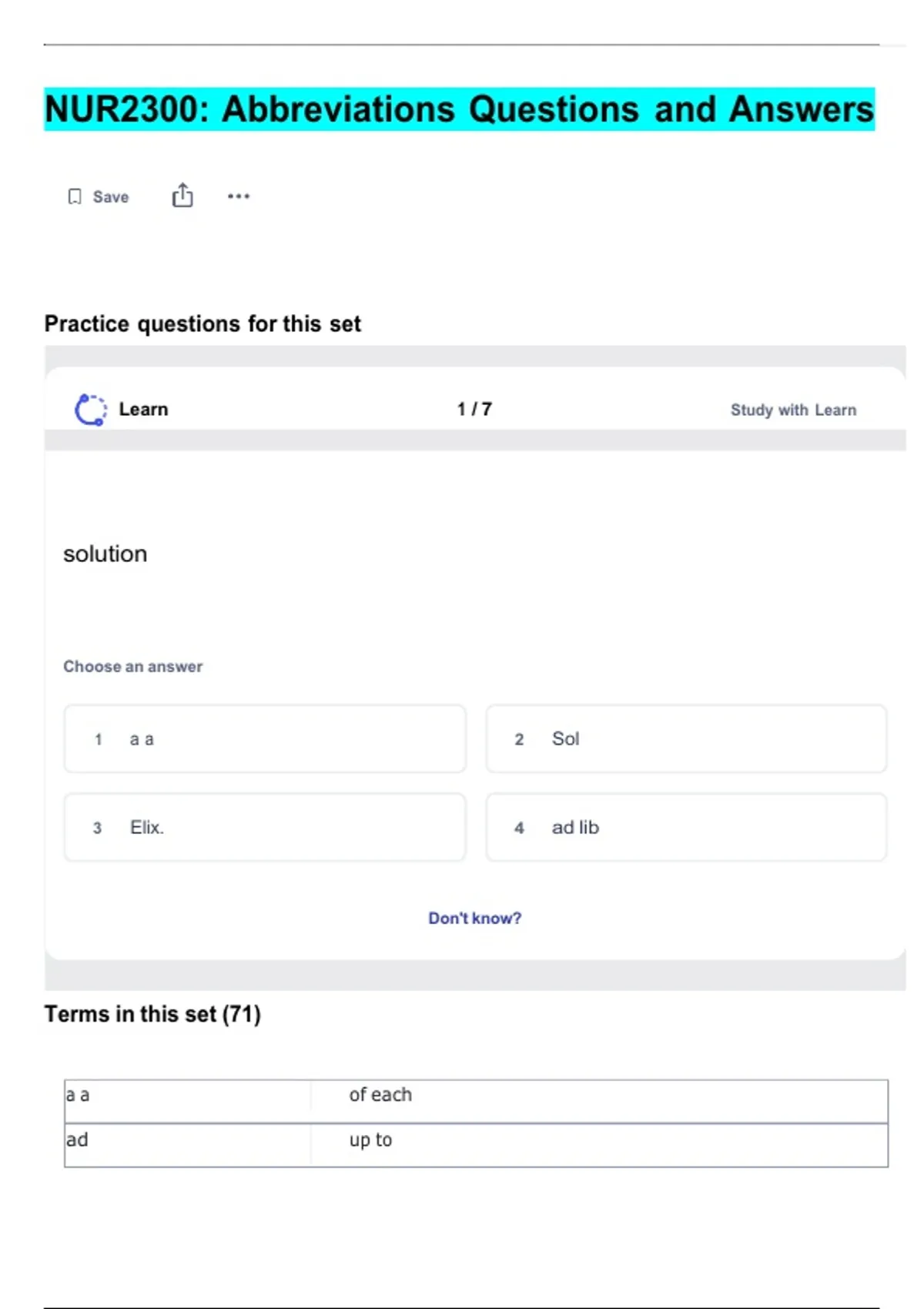 NUR2300: Abbreviations Questions and Answers
