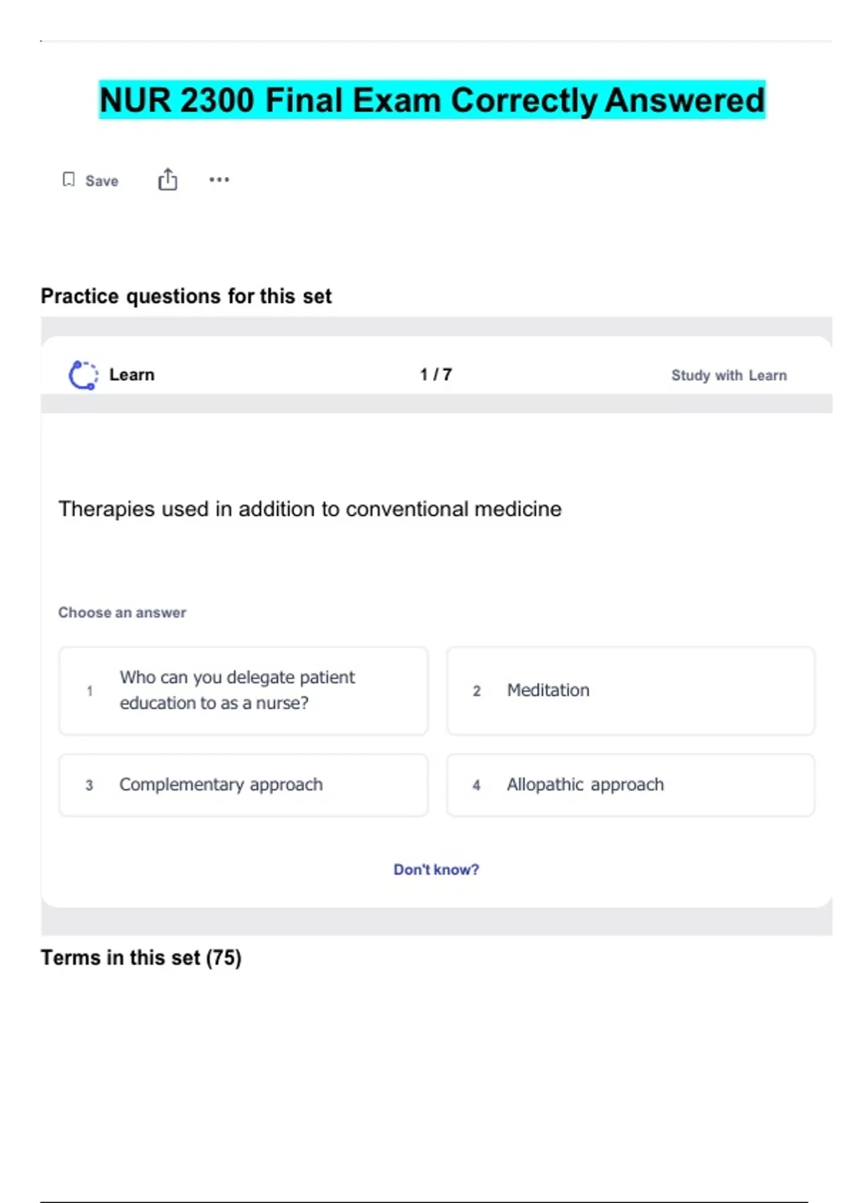 Practice questions for this set