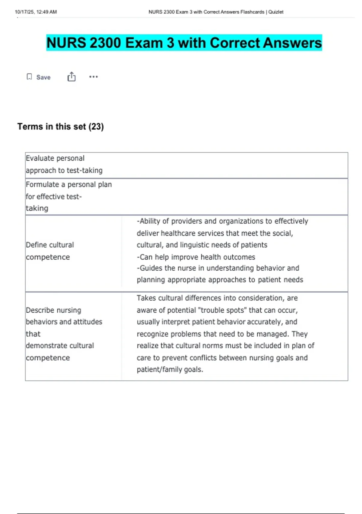 10/17/25, 12:49 AM NURS 2300 Exam 3 with Correct Answers Flashcards | Quizlet
