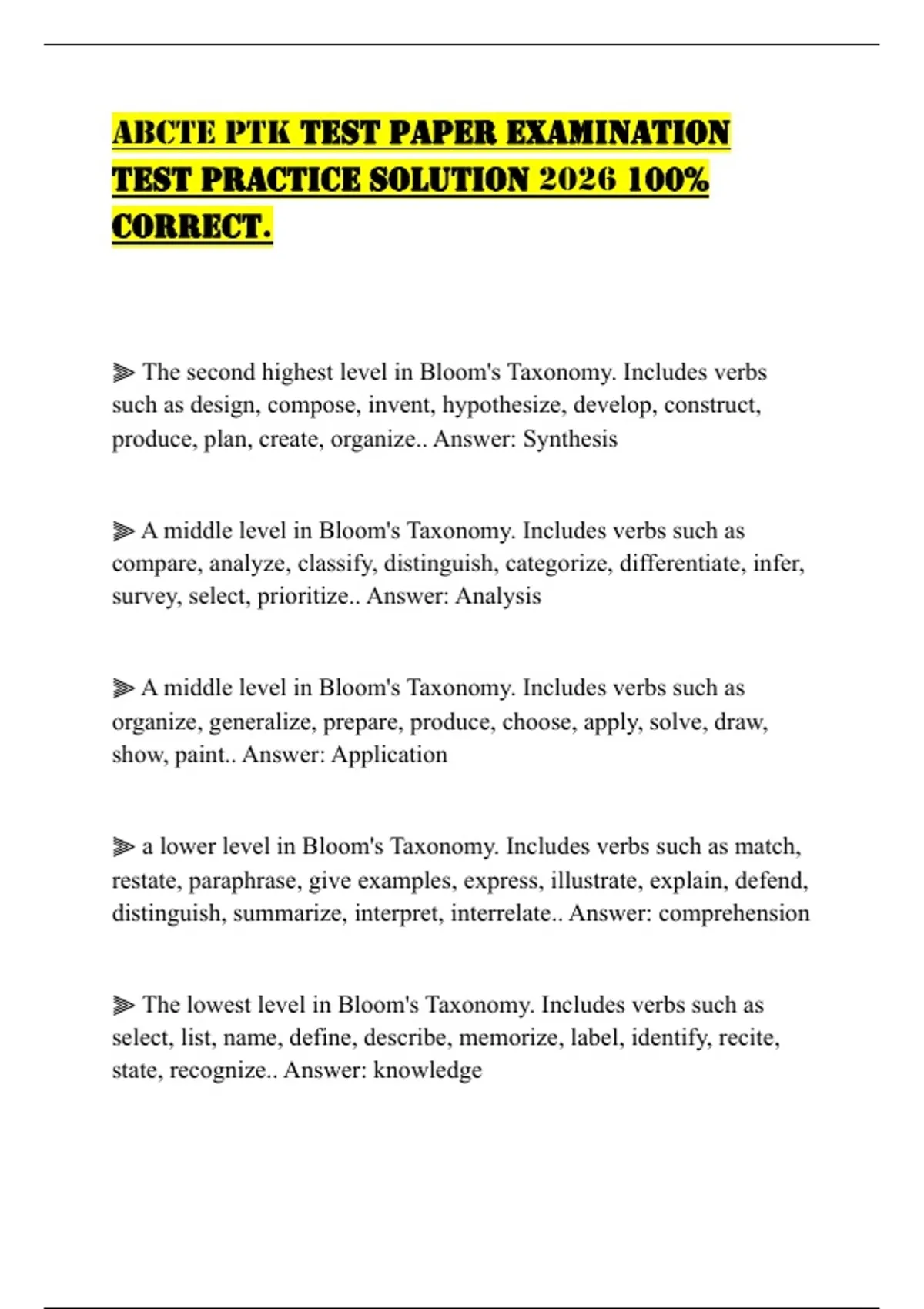 ⫸ The second highest level in Bloom's Taxonomy. Includes verbs