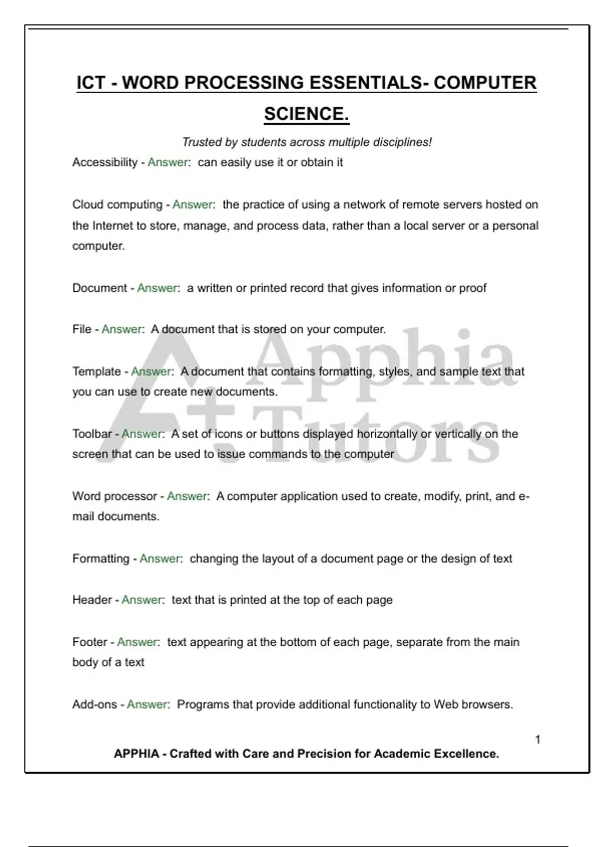 ICT - WORD PROCESSING ESSENTIALS- COMPUTER SCIENCE. Trusted by students across multiple disciplines!