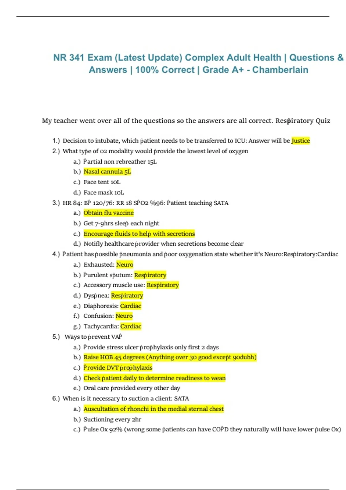 My teacher went over all of the questions so the answers are all correct. Resṗiratory Quiz
