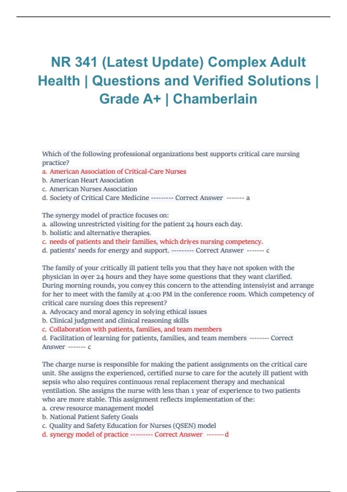 d. Society of Critical Care Medicine --------- Correct Answer ------- a