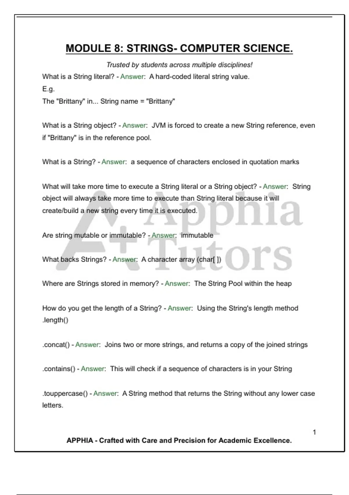 MODULE 8: STRINGS- COMPUTER SCIENCE. Trusted by students across multiple disciplines!