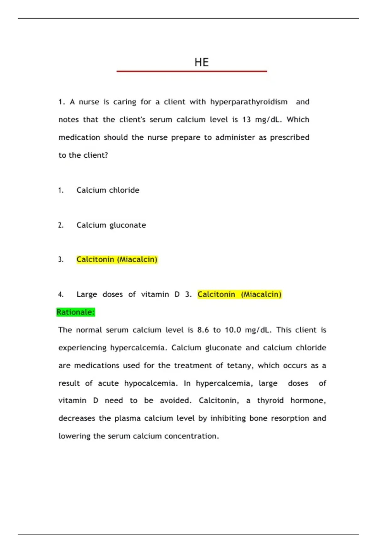 4. Large doses of vitamin D 3. Calcitonin (Miacalcin)