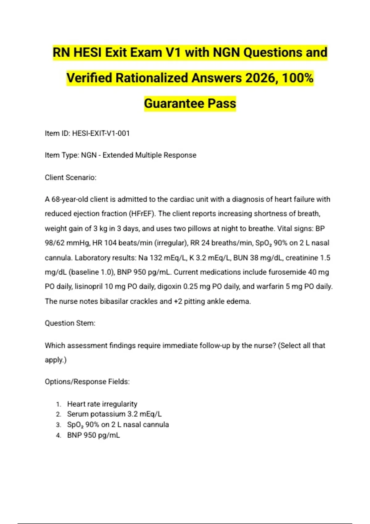 RN HESI Exit Exam V1 with NGN Questions and