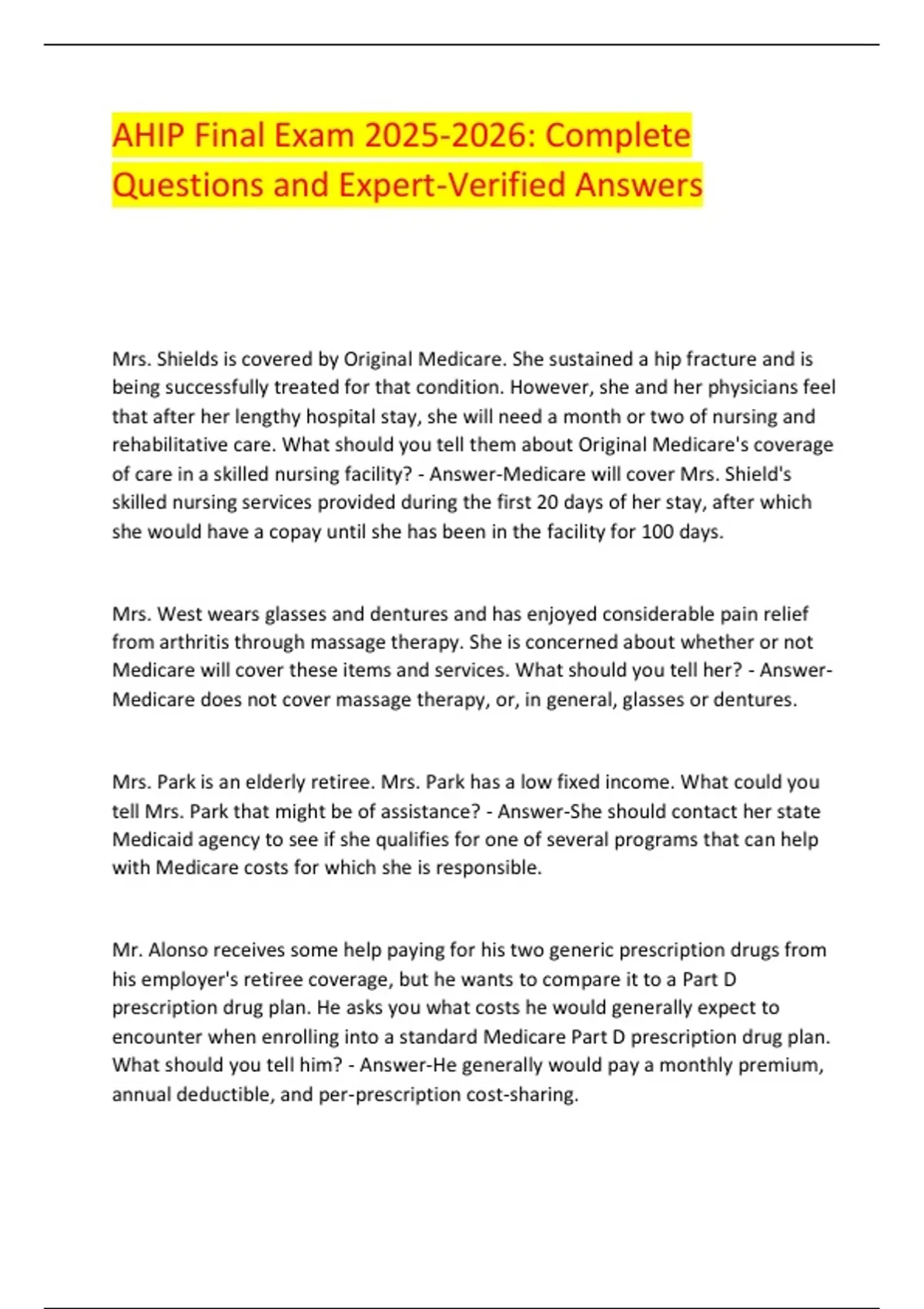 AHIP Final Exam : Complete Questions and Expert-Verified Answers