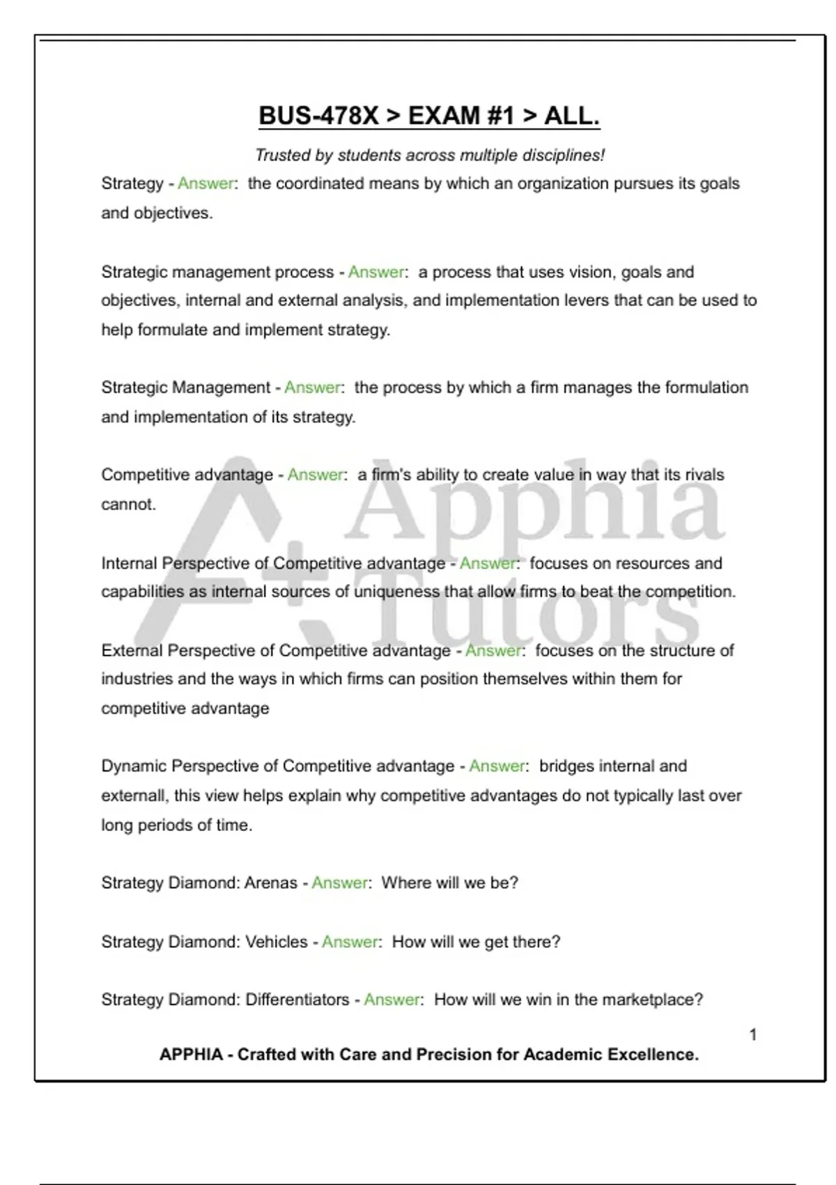BUS-478X > EXAM #1 > ALL. Trusted by students across multiple disciplines!
