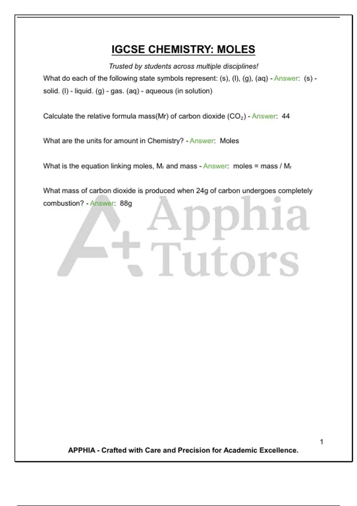 IGCSE CHEMISTRY: MOLES Trusted by students across multiple disciplines!