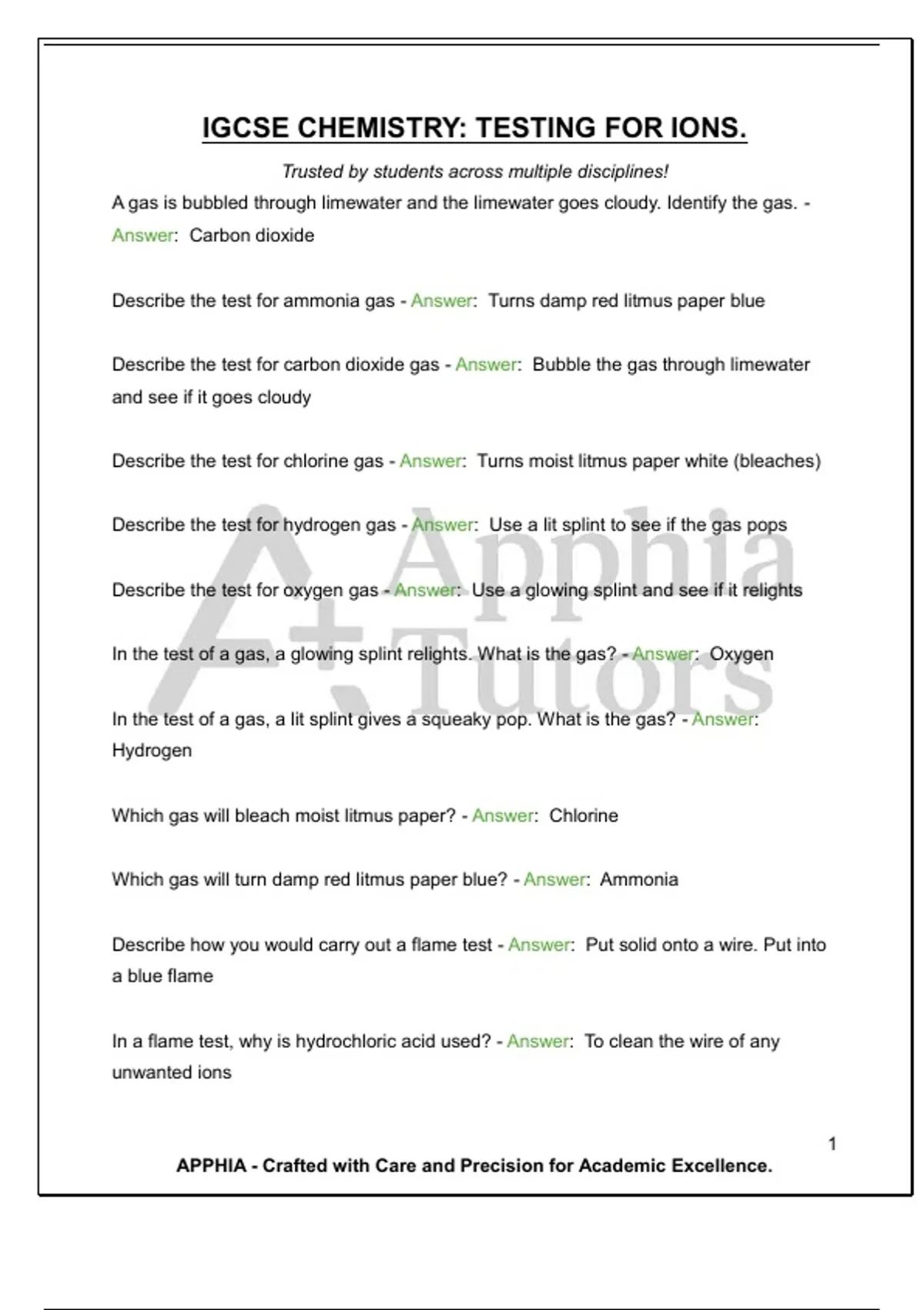 IGCSE CHEMISTRY: TESTING FOR IONS. Trusted by students across multiple disciplines!