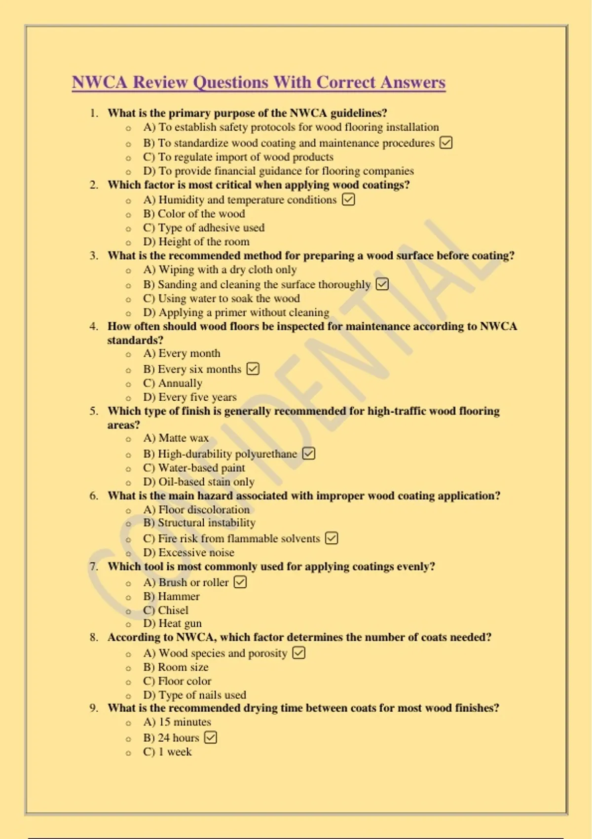 NWCA Review Questions With Correct Answers
