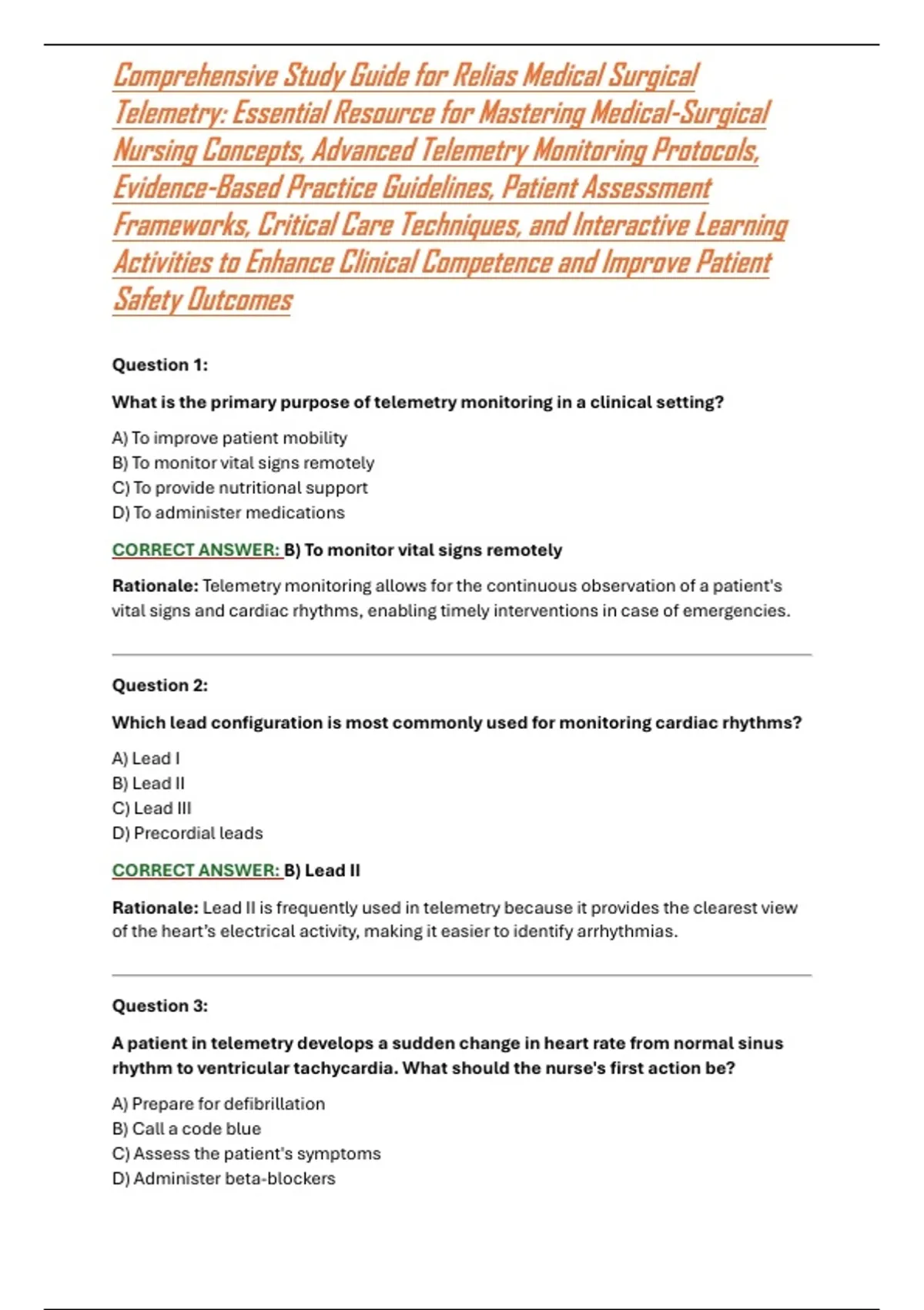 Telemetry: Essential Resource for Mastering Medical-Surgical