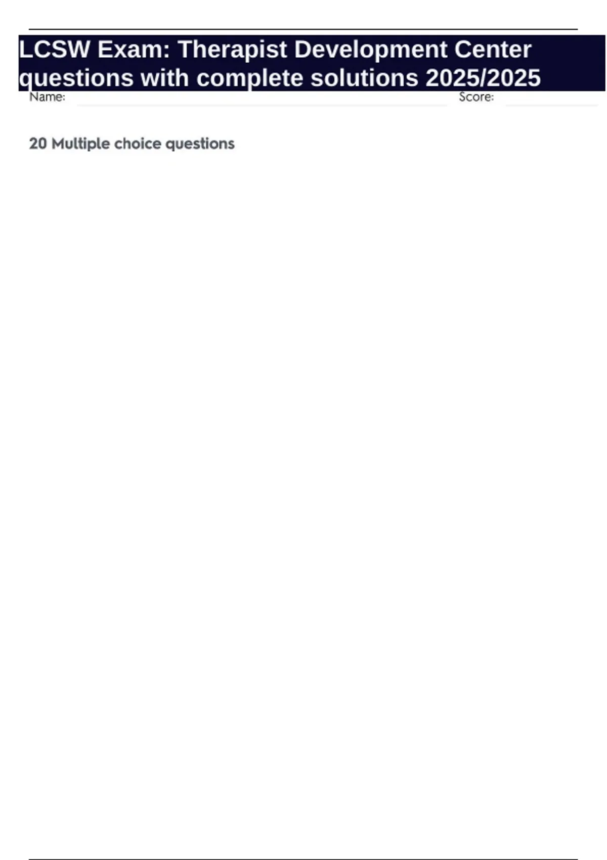 LCSW Exam: Therapist Development Center questions with complete solutions 2025/2025