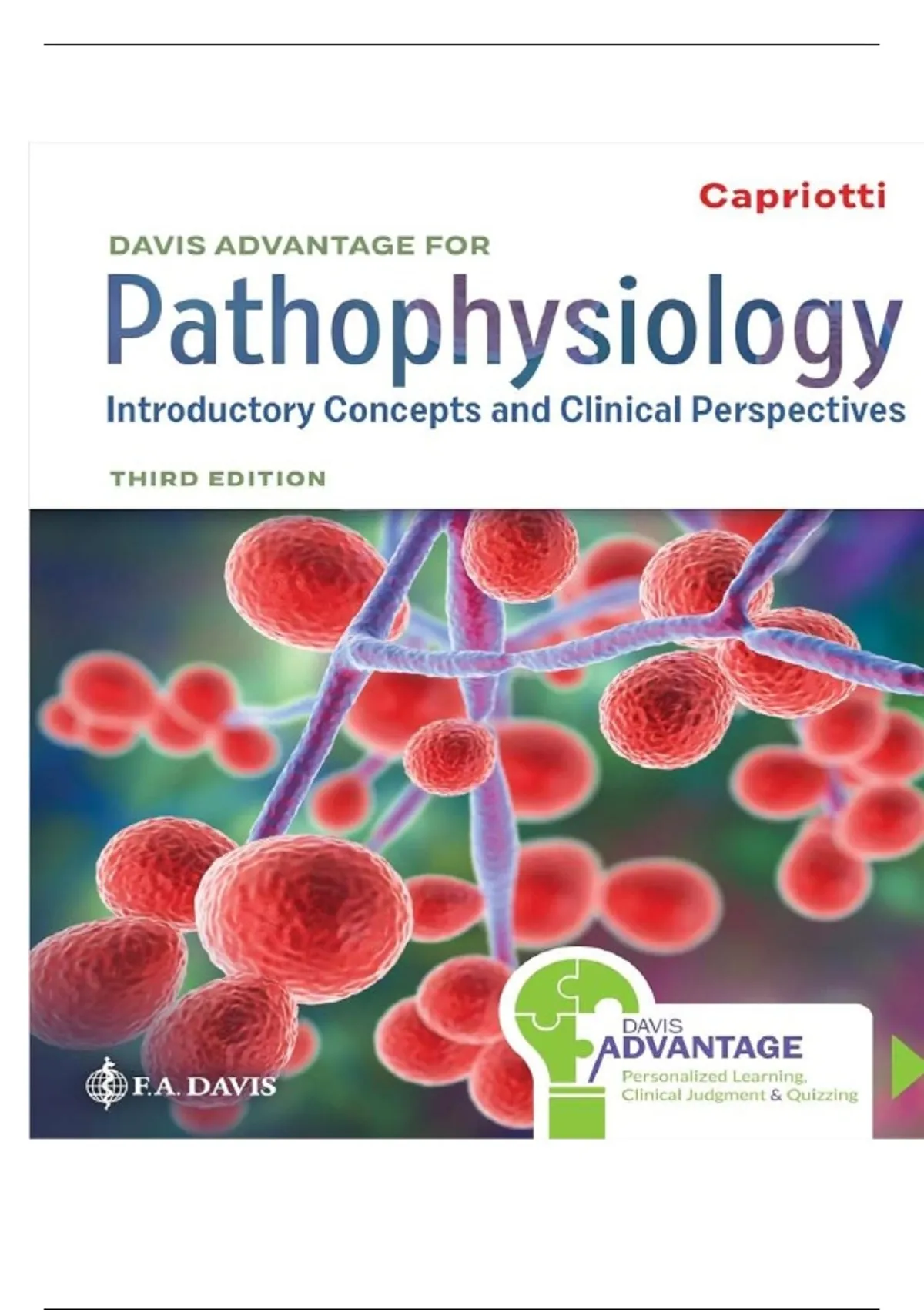 TEST BANK FOR Davis Advantage for Pathophysiology: Introductory Concepts and Clinical Perspectives Third Edition by Theresa Capriotti ISBN: 978-1719648592 COMPLETE GUIDE ALL CHAPTERS COVERED 100% VERIFIED A+ GRADE ASSURED!!!!!NEW LATEST UPLOAD!!!!!!