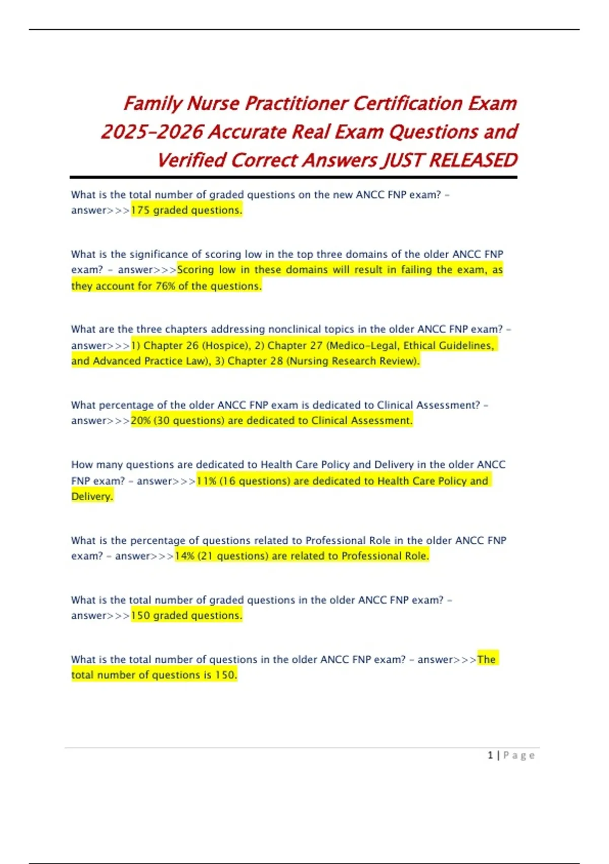 ,When was the older ANCC FNP exam released? - answer>>>The older ANCC FNP exam
