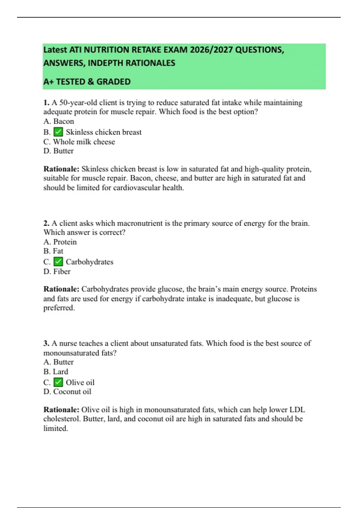 Latest ATI NUTRITION RETAKE EXAM 2026/2027 QUESTIONS, ANSWERS, INDEPTH RATIONALES A+ TESTED & GRADED