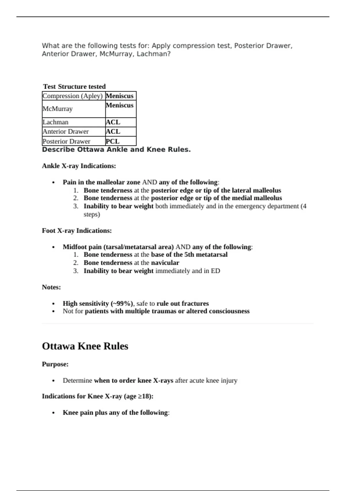 Anterior Drawer, McMurray, Lachman?