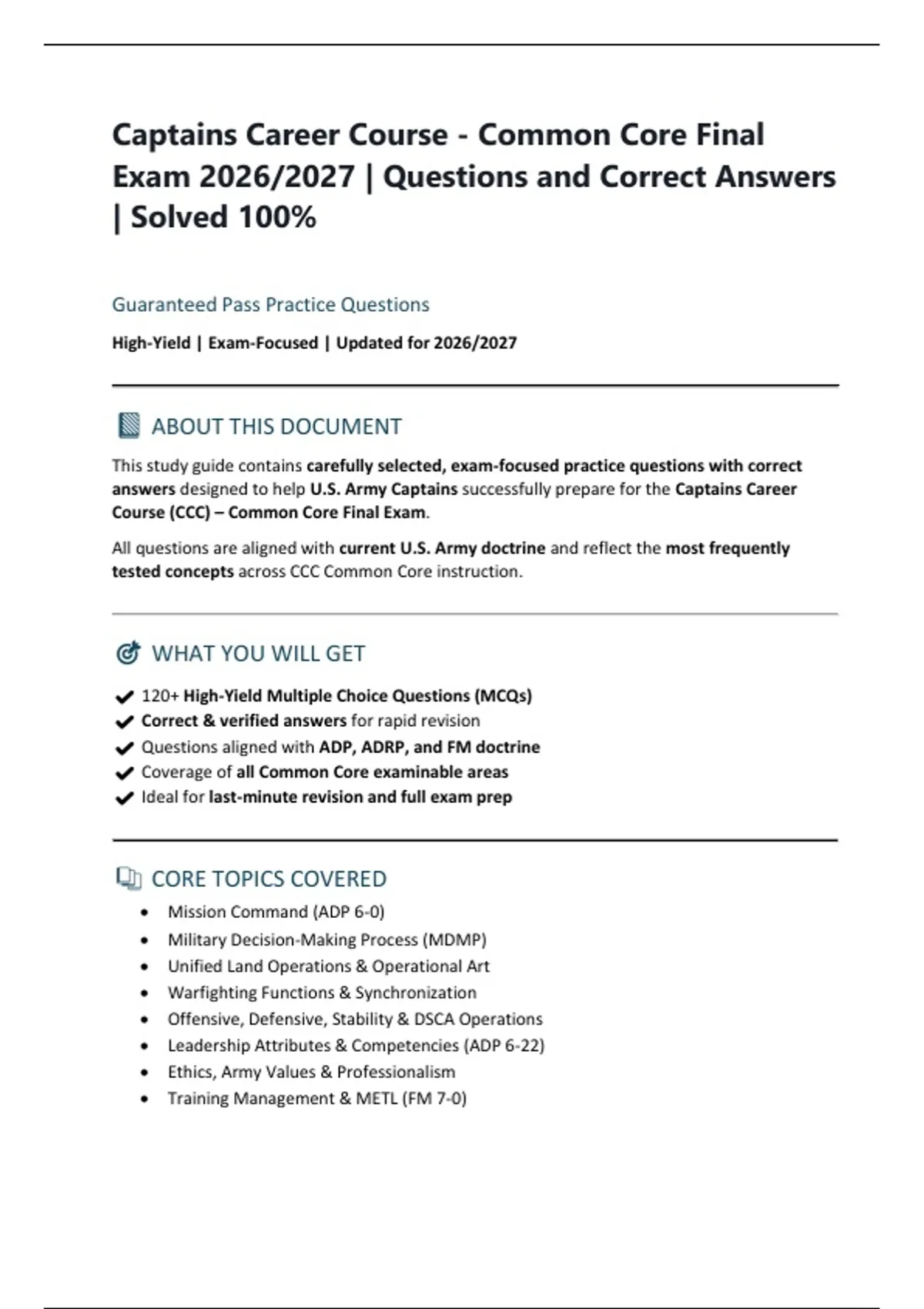 ✔ Questions aligned with ADP, ADRP, and FM doctrine