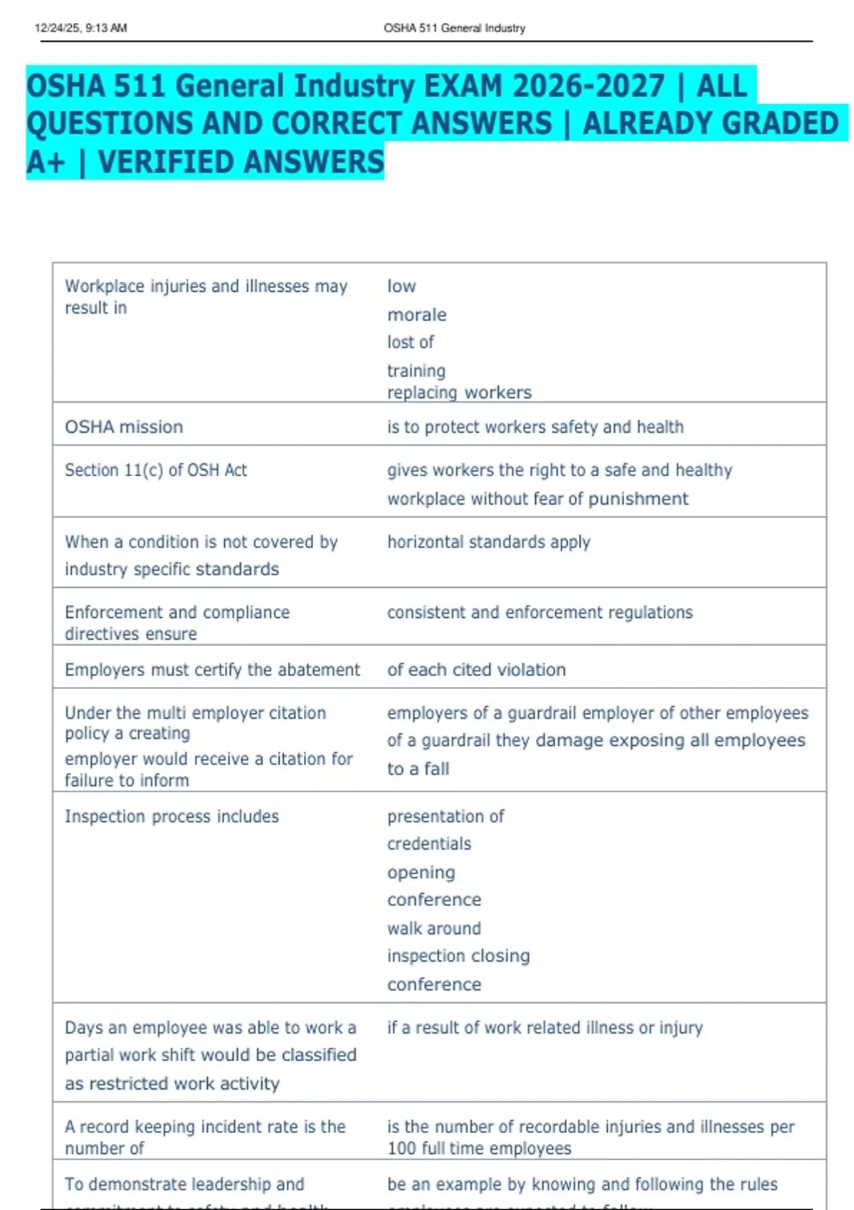 OSHA 511 General Industry EXAM 2026-2027 | ALL