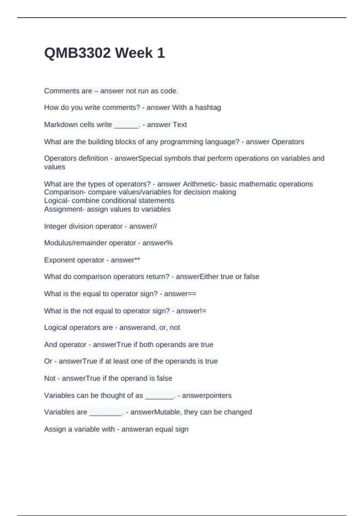 Exam of 3 pages for the course QMB3302 at QMB3302 (QMB3302 Week 1)