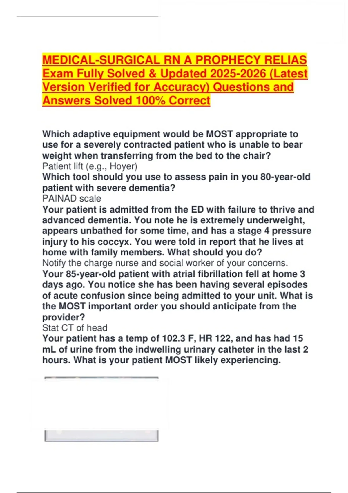 MEDICAL-SURGICAL RN A PROPHECY RELIAS Exam Fully Solved & Updated (Latest Version Verified for Accuracy) Questions and Answers Solved 100% Correct