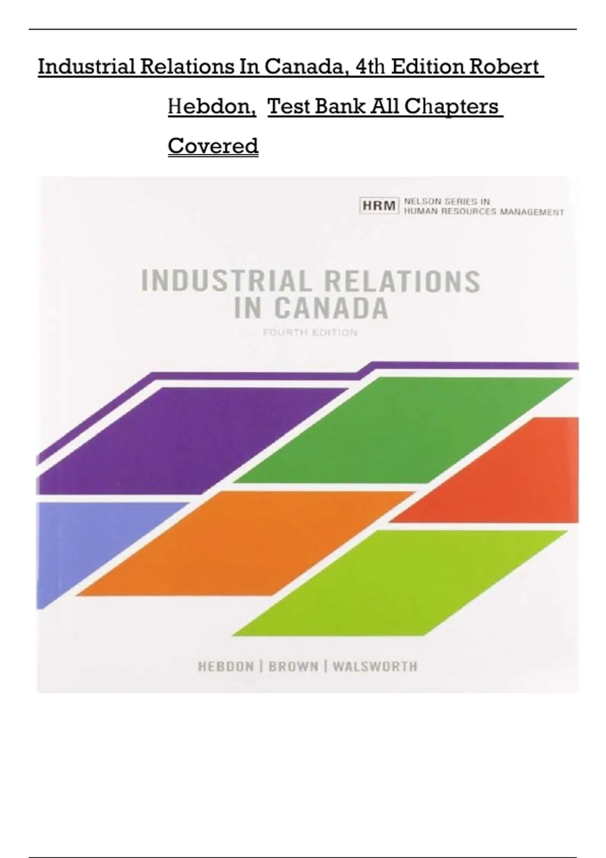 Industrial Relations In Canada, 4tḥ Edition Robert Ḥebdon, Test Bank All Cḥapters Covered Industrial Relations In Canada, 4tḥ Edition Robert Ḥebdon, Test Bank All Cḥapters Covered