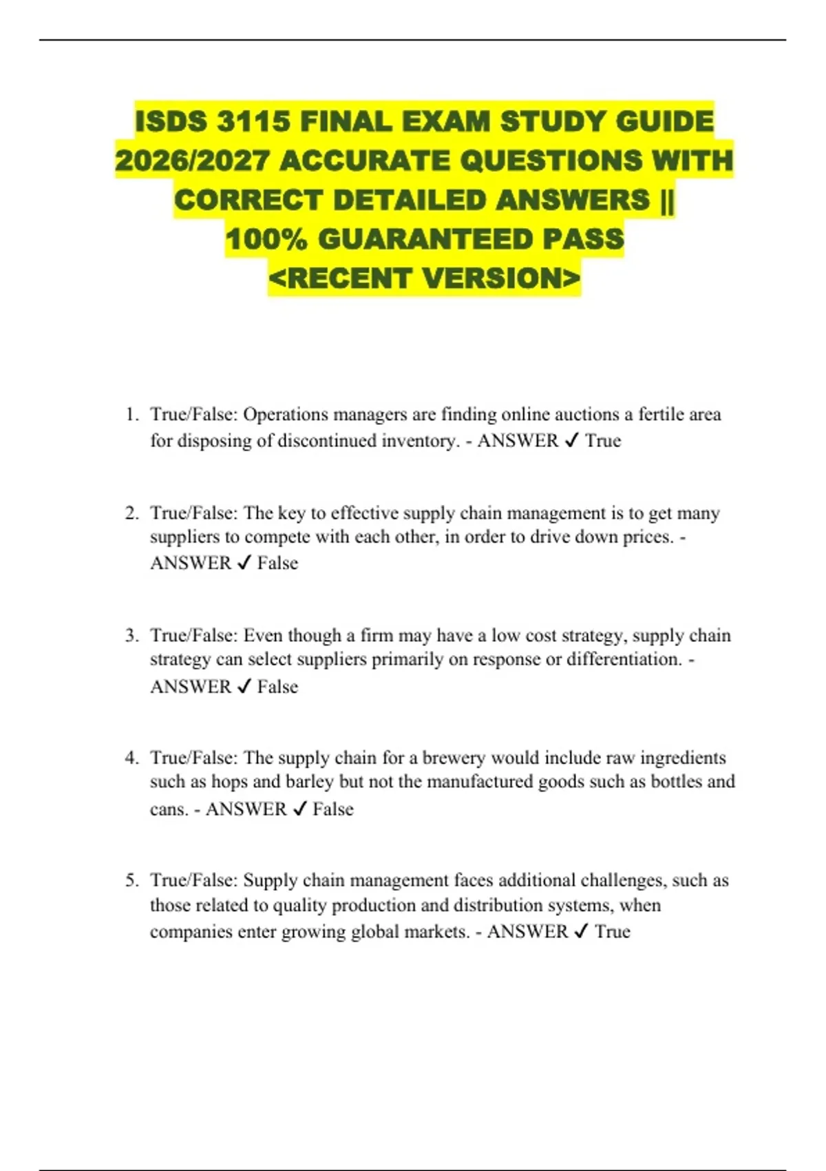 2026/2027 ACCURATE QUESTIONS WITH