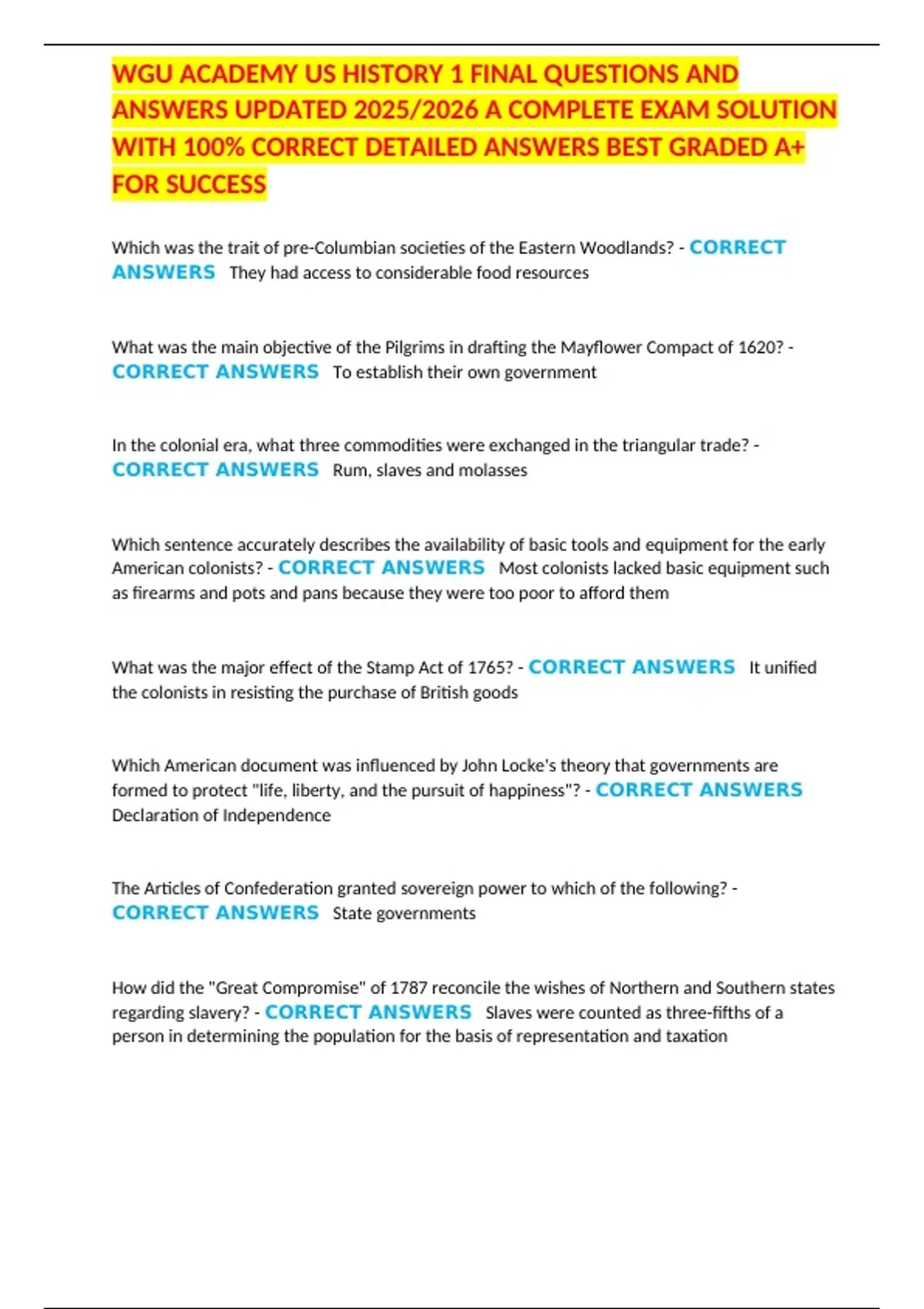 , WGU ACADEMY US HISTORY 1 FINAL QUESTIONS AND