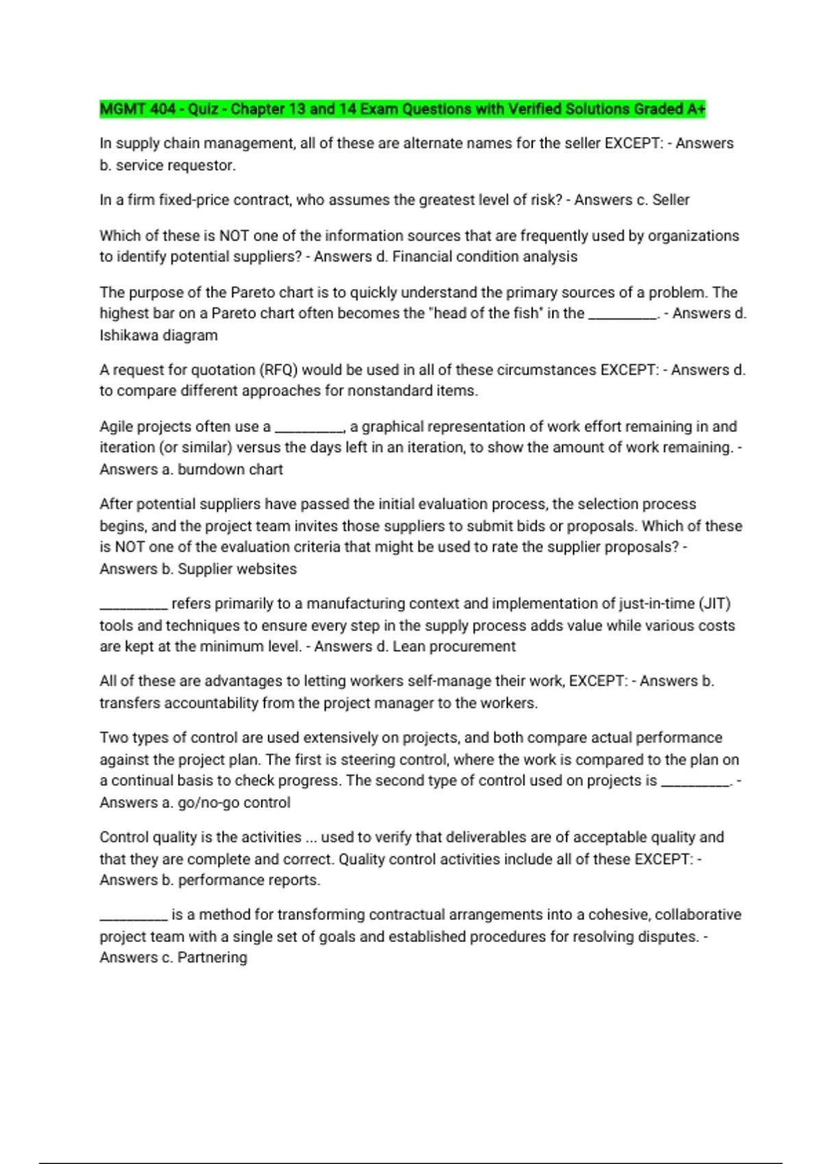 In a firm fixed-price contract, who assumes the greatest level of risk? - Answers c. Seller