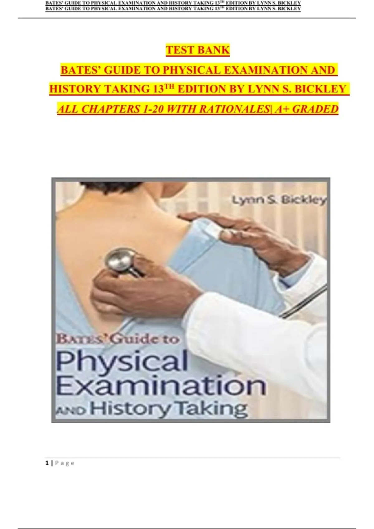 , BATES’ GUIDE TO PHYSICAL EXAMINATION AND HISTORY TAKING 13TH EDITION BY LYNN S. BICKLEY