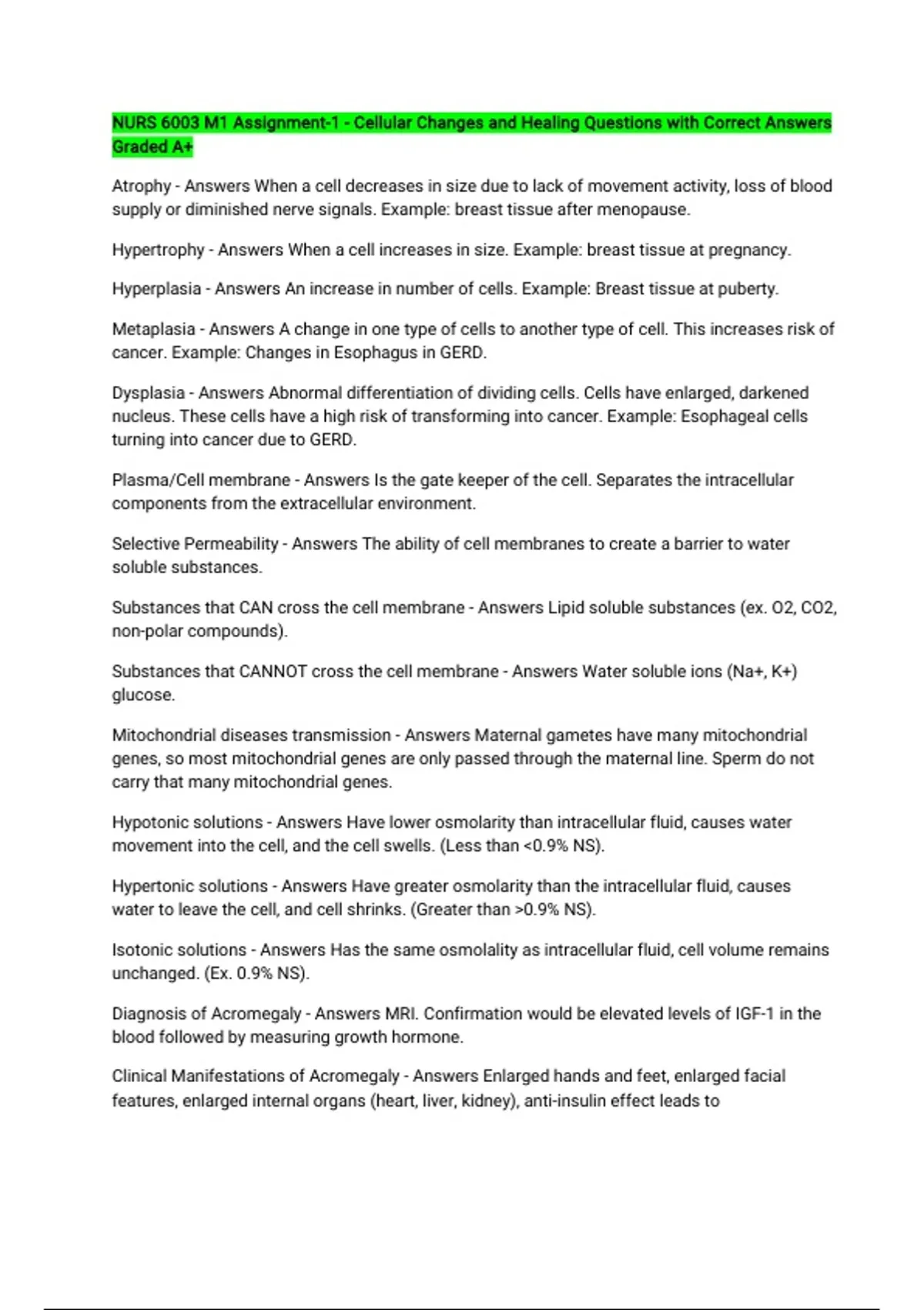 NURS 6003 M1 Assignment-1 - Cellular Changes and Healing Questions with Correct Answers Graded A+