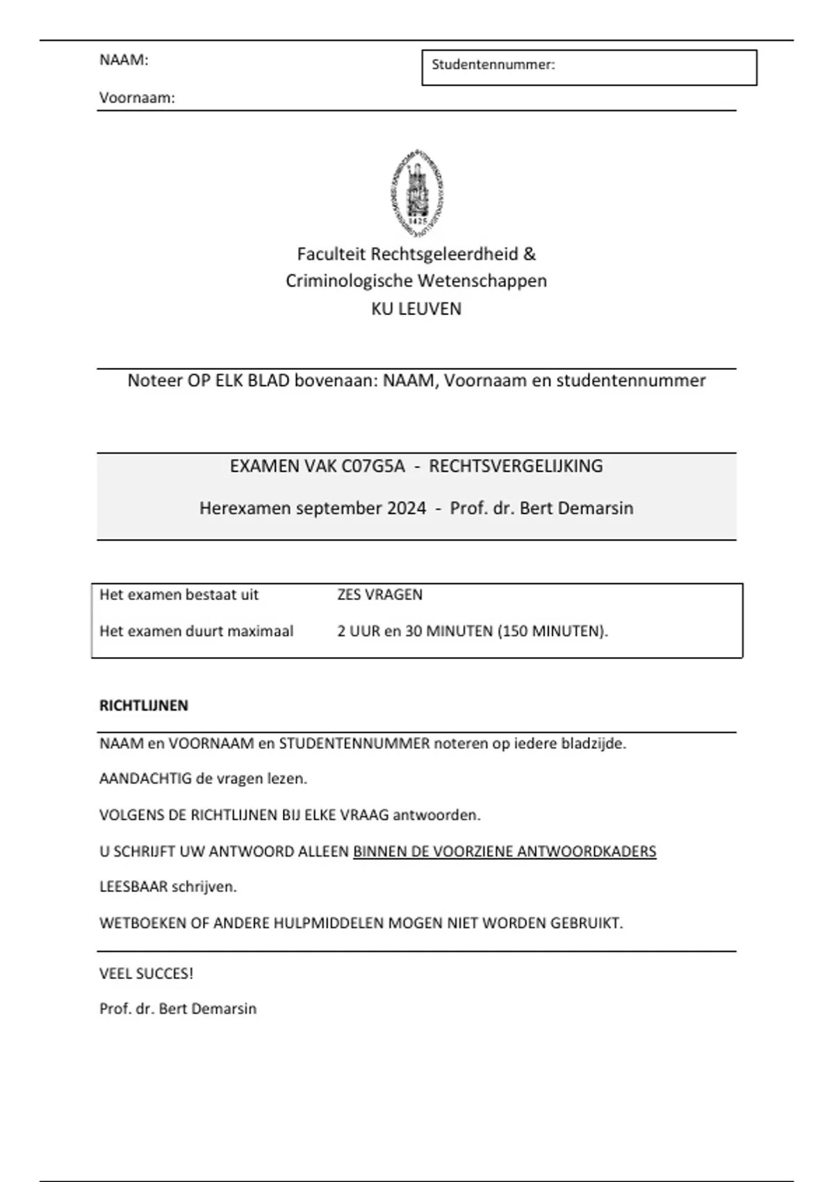 EXAMEN VAK C07G5A - RECHTSVERGELIJKING