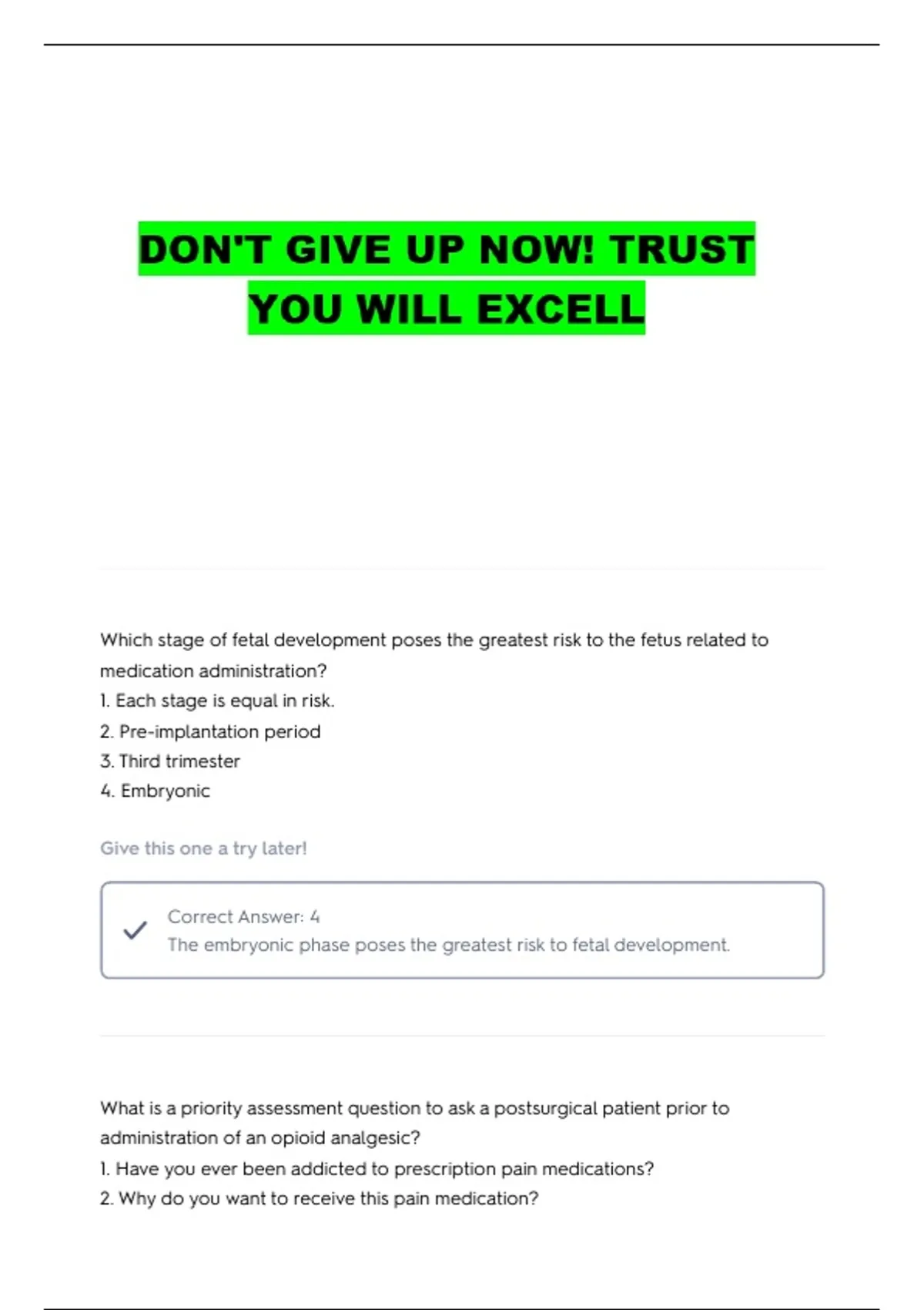 pain medication postsurgery is a priority; this is not the time to assess if the