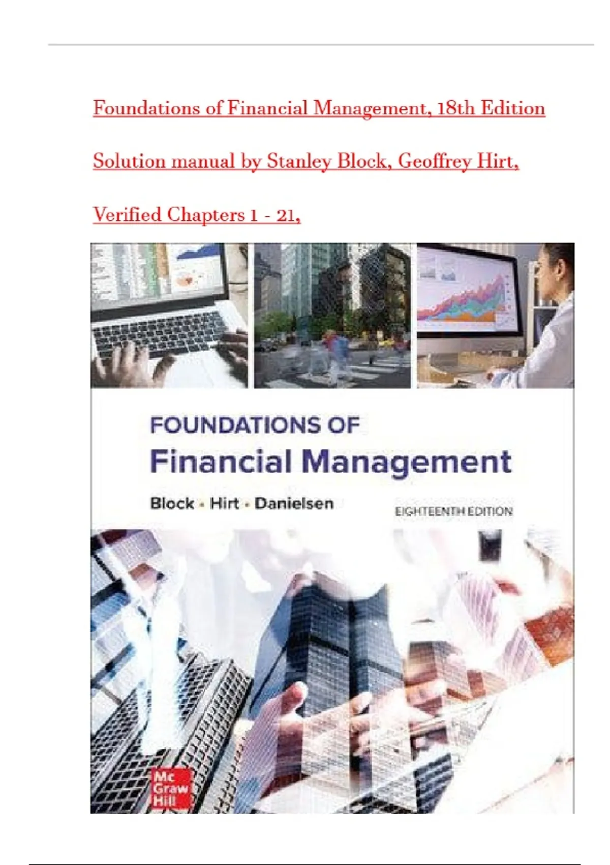 Foundations of Financial Management, 18th Edition SOLUTION MANUAL by Stanley Block, Geoffrey Hirt, Verified Chapters 1 - 21, Complete Newest Version