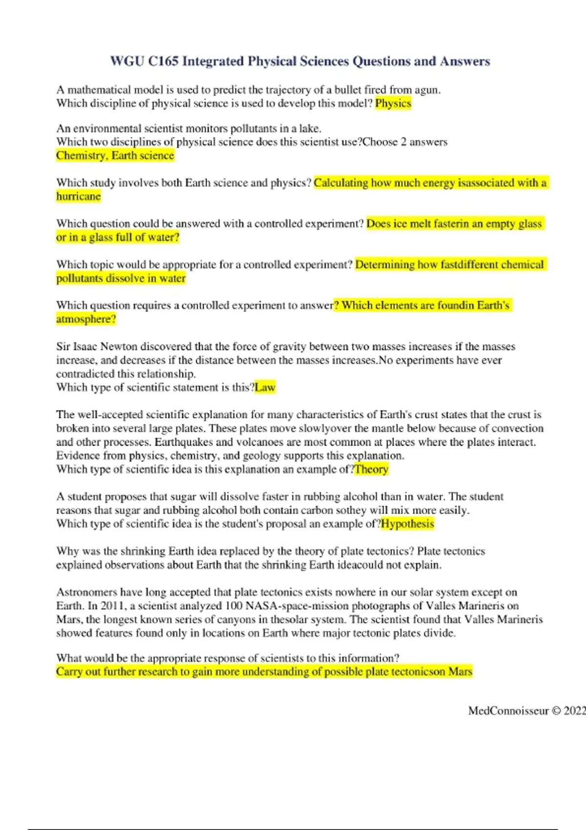 WGU C165 Integrated Physical Sciences Questions and Answers | ALL CHAPTERS GRADED A+