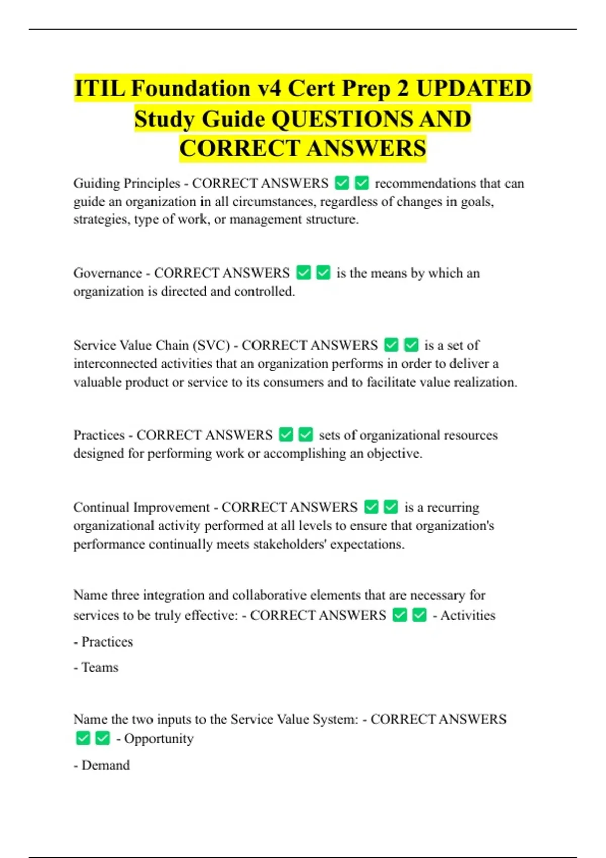 Service Value Chain (SVC) - CORRECT ANSWERS is a set of