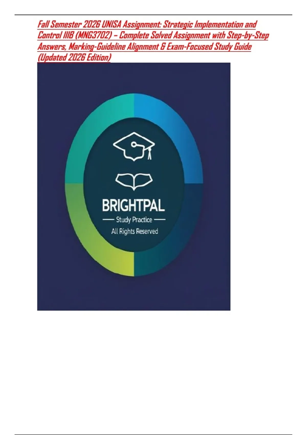Control IIIB (MNG3702) – Complete Solved Assignment with Step-by-Step