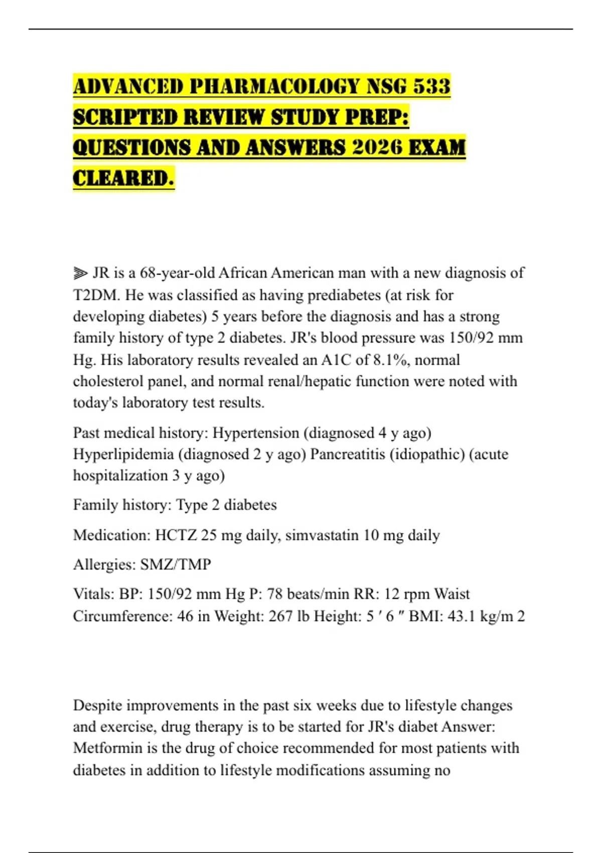 ⫸ JR is a 68-year-old African American man with a new diagnosis of