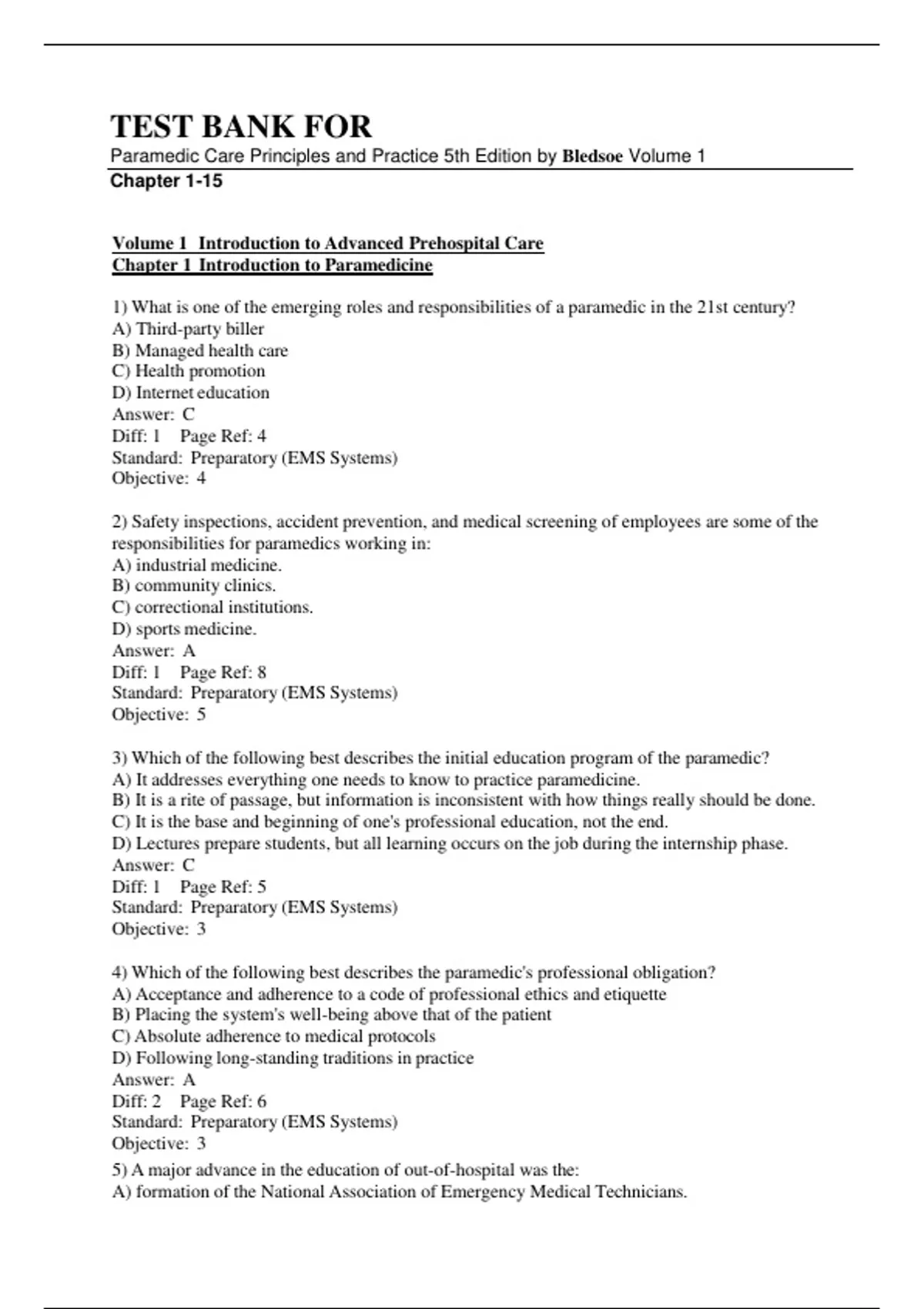 Paramedic Care Principles and Practice 5th Edition by Bledsoe Volume 1