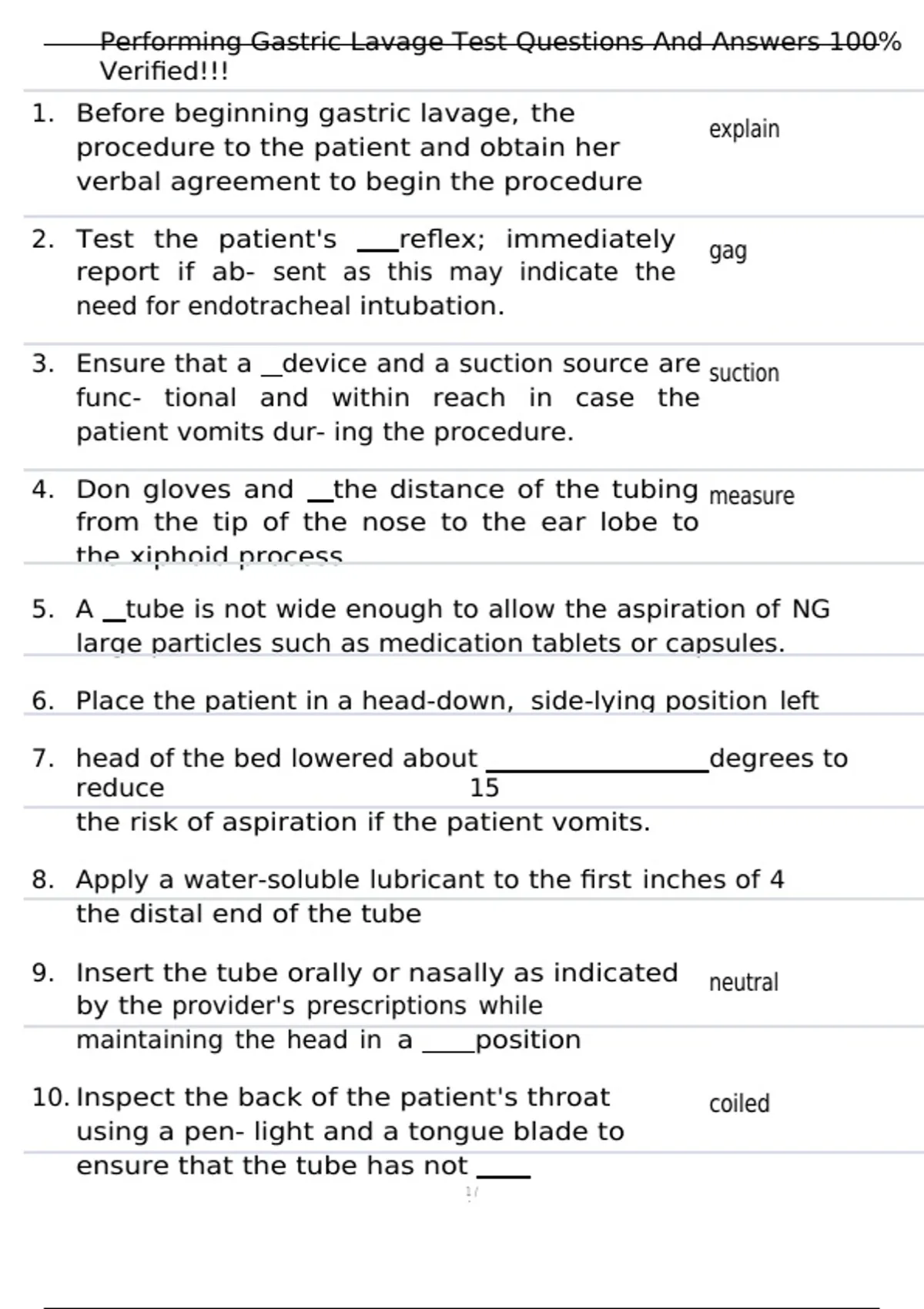 1. Before beginning gastric lavage, the