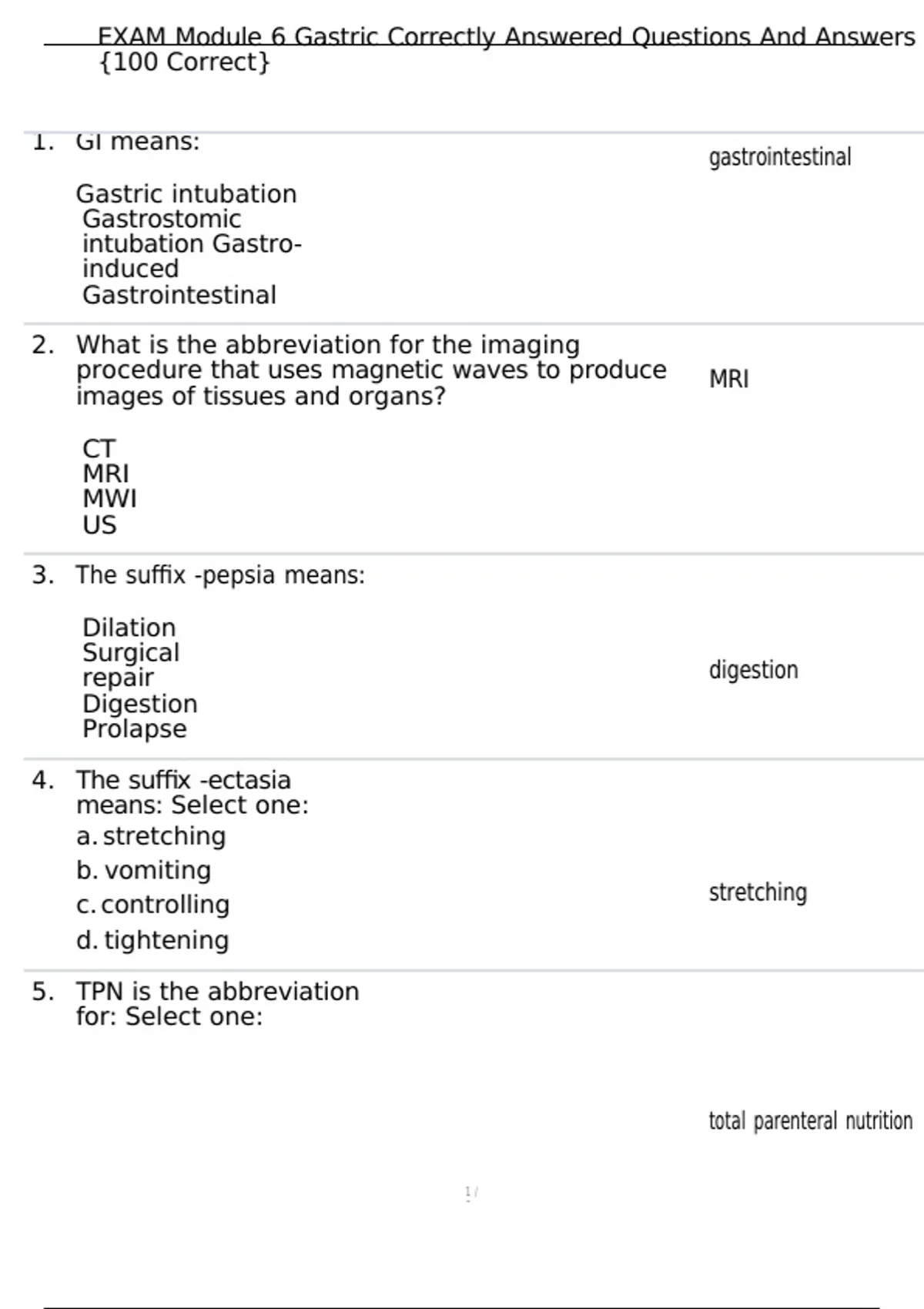 , EXAM Module 6 Gastric Correctly Answered Questions And Answers