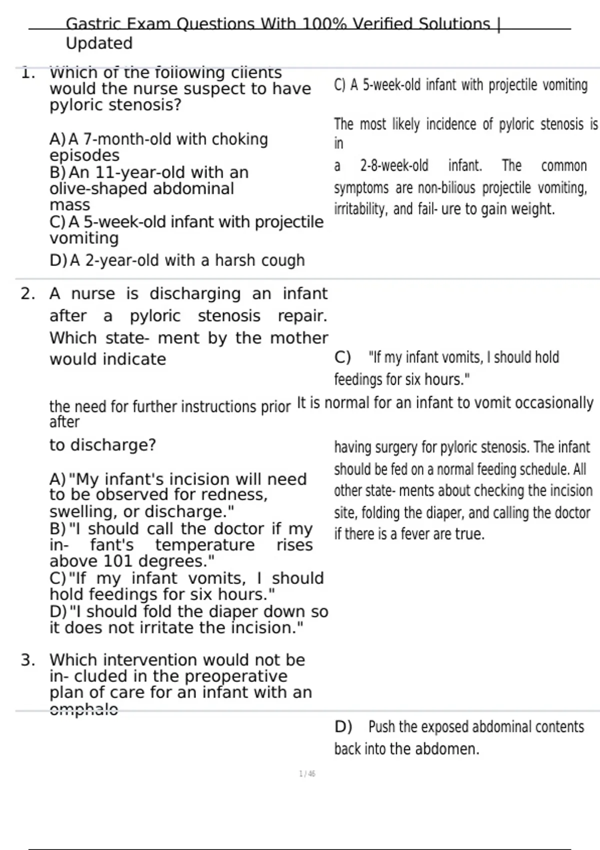 would the nurse suspect to have C) A 5-week-old infant with projectile vomiting