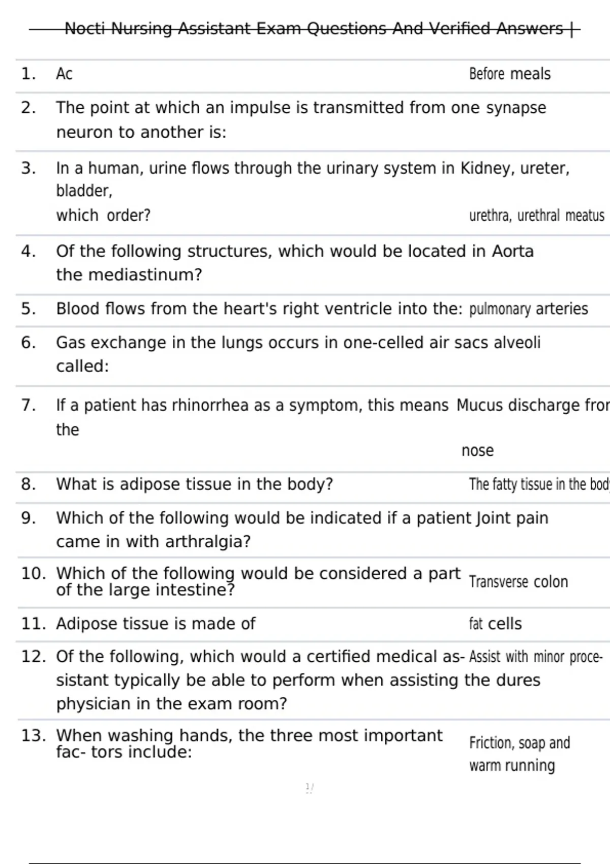 , Nocti Nursing Assistant Exam Questions And Verified Answers |
