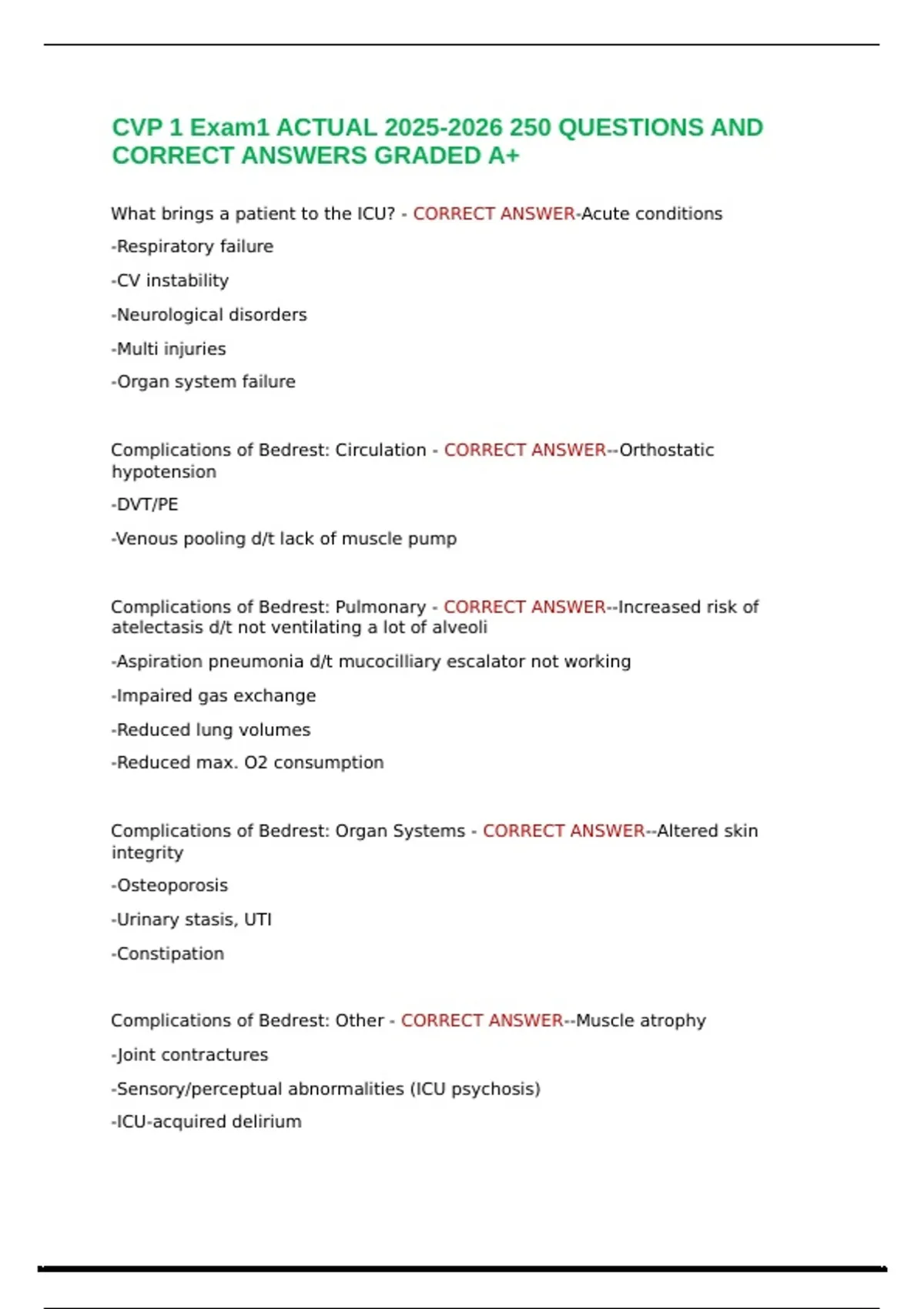 Complications of Bedrest: Pulmonary - CORRECT ANSWER--Increased risk of