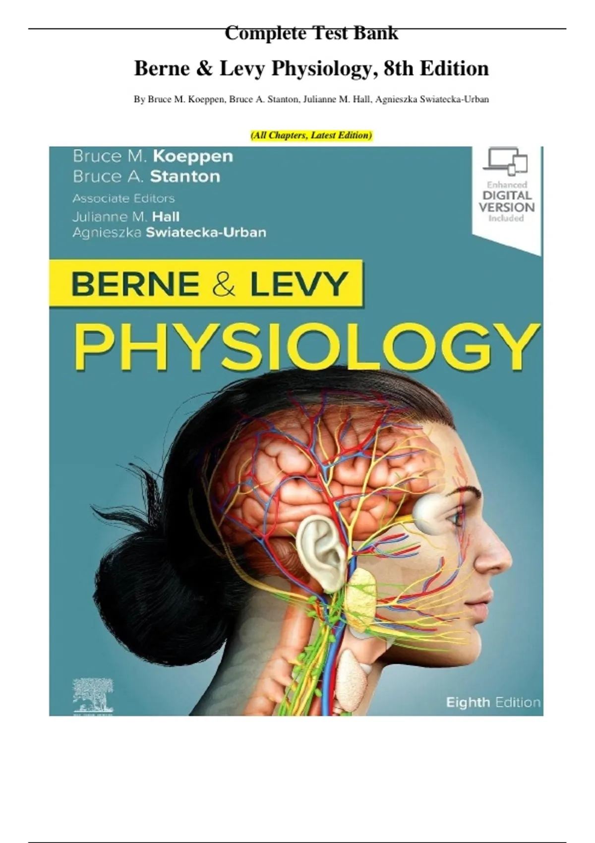 Complete Test Bank Berne & Levy Physiology, 8th Edition. By Bruce M. Koeppen, Bruce A. Stanton, Julianne M. Hall, Agnieszka Swiatecka-Urban (All Chapters, Latest Edition) Berne & Levy Physiology, 8th Edition, provides a perfect balance of content to deliver an in-depth understanding of the body’s dynamic processes. Long respected for its scientifically rigorous approach, this highly regarded, mid-size text offers essential physiology with integrated coverage of biophysics andkey experimental observations and examples―all designed to provide a solid scientific foundation in physiology for future scientists and clinicians.