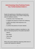 how often do you need a tdap booster - Correct Answer-every 10 years i x Examen • 32 páginas • por COURSEROOM • subido 2026 Vista rápida i x Primary Care Adult 1 NP Ex • Primary Care Adult 1 NP Ex Adult-Gerontology Nurse Practitioner Practice Test | Verified Questions Graded A+ (0) $10.99 0x vendido i x Examen • 8 páginas • por COURSEROOM • subido 2026 Vista rápida i x 1 Adult-Gerontology Nurse Practitioner Practi • 1 Adult-Gerontology Nurse Practitioner Practi AANP AGPCNP PRACTICE With Questions and Answers Graded A+ (0) $20.99 0x vendido An 88-year-old presents with right-side weakness