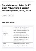 Florida Laws and Rules for PT Exam / Questions & Correct Answer Updated, 2025 / 2026.