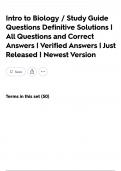 Intro to Biology / Study Guide Questions Definitive Solutions | All Questions and Correct Answers | Verified Answers | Just Released | Newest Version